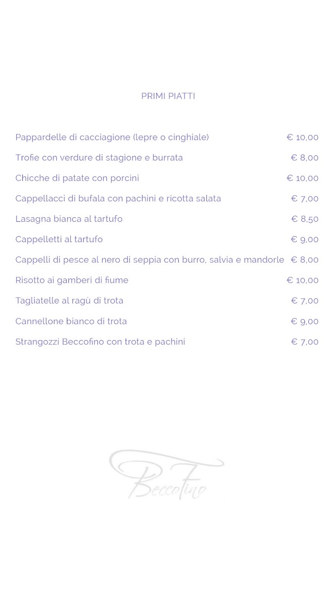 Welcome to Ristorante Beccofino, a gem nestled in the heart of Gaifana, Italy. This unique eatery enchants guests with its serene surroundings and exceptional cuisine, particularly its freshwater fish dishes, praised by visitors for their exquisite preparation and flavor. As you enter, you are greeted by a scenic outdoor seating area, complete with a picturesque pond full of sturgeon and trout, offering a dining experience akin to being in an aquarium.